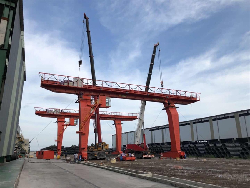 2、自身重量较小,但是吊运货物通过支腿外处的空间相对小些。
