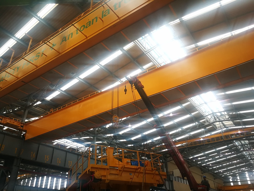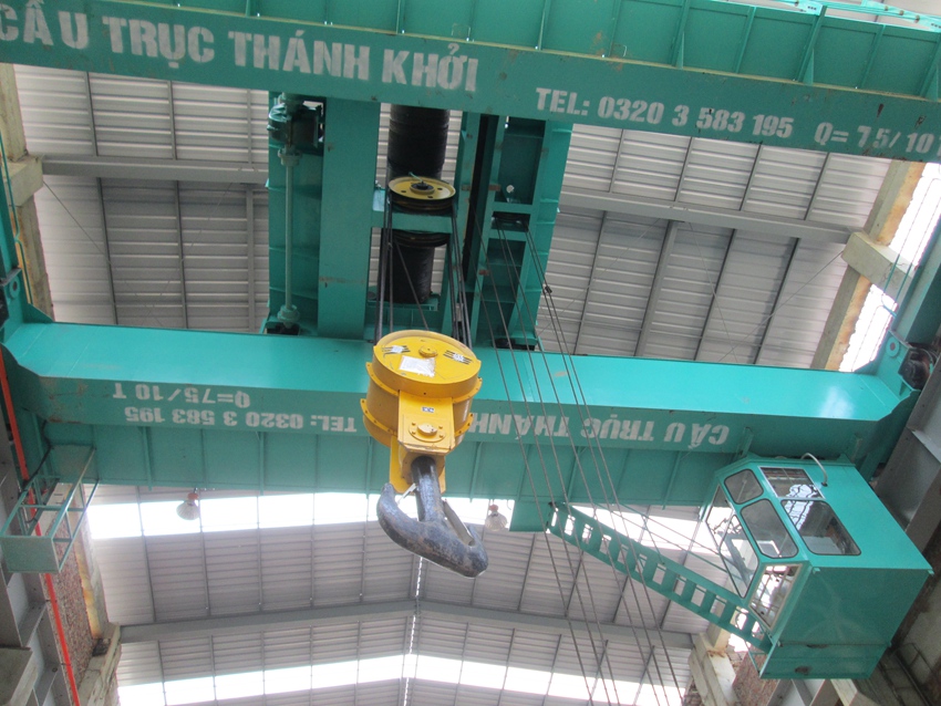 本起重机采用挂梁吊运长件钢坯、板材、棒材、盘圆等物品,配置电磁吸盘或夹钳或特殊群钩进行吊装